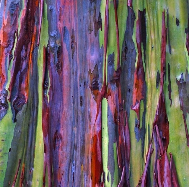 Eucalyptus deglupta es el nombre científico del árbol de los mil colores. Una planta de hojas perennes y flores de color crema, con una corteza tan bella como delicada: con sólo tres milímetros de grosor es una de las más delgadas de todas las especies eucalyptus.